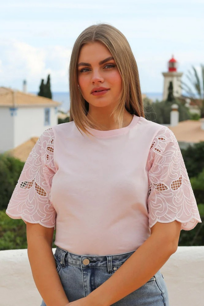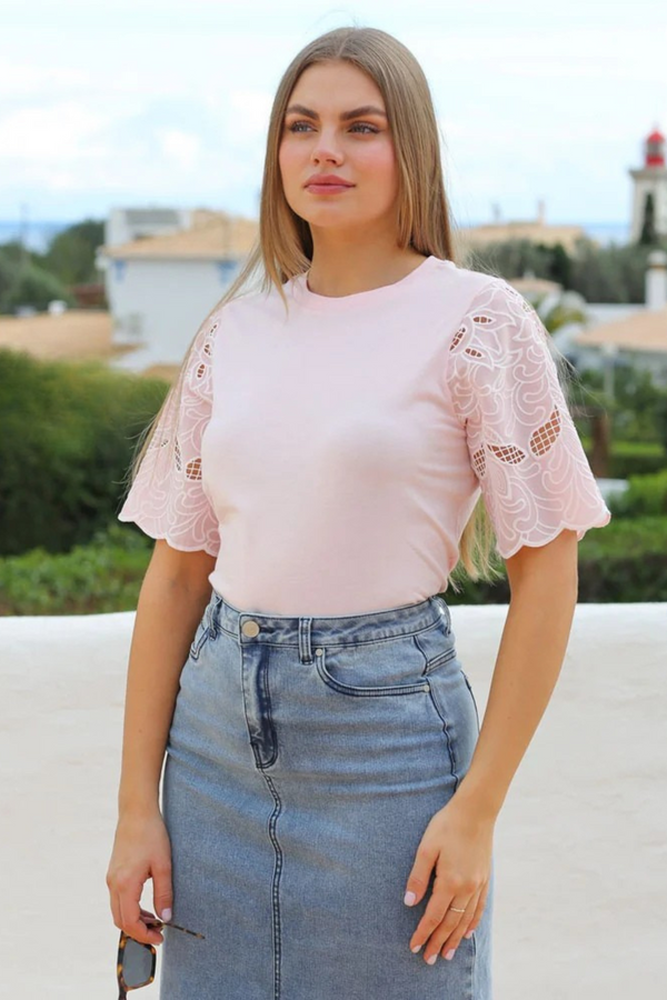 FRANSA Short Sleeve Top - Azure Blue