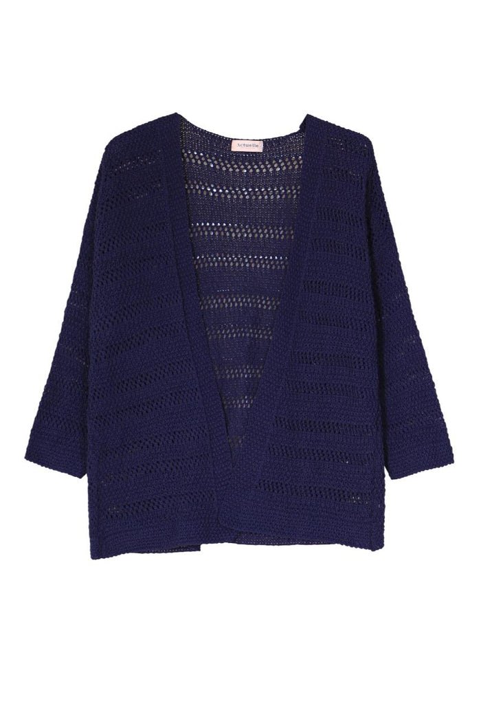 ACTUELLE Open-Knit Striped Jumper - Navy