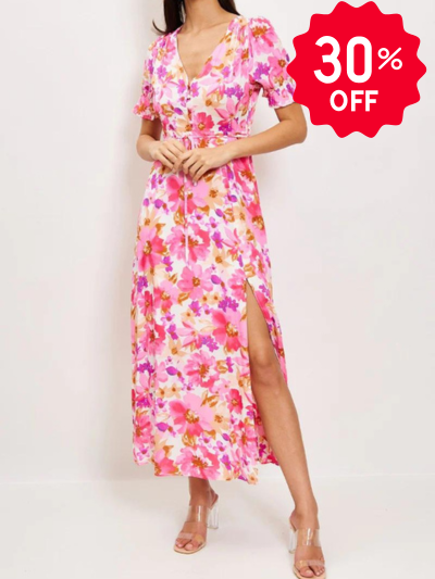 COPE CLOTHING : Elegant Pleated Floral Dress
