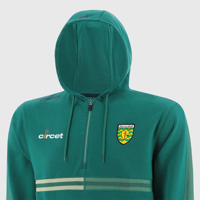 Introducing the O'NEILLS Donegal GAA Men's Nepal Fleece Half Zip Hoodie in Green. Made with soft cotton fleece, this half zip hoodie provides unbeatable comfort and functionality. Perfect for cheering in the stands or chilly training sessions, complete with a half zip closure.