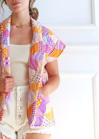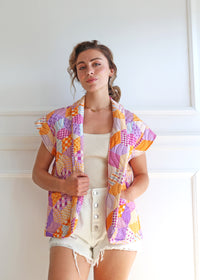 COPE CLOTHING : Geometric Print Padded Shoulder Sleeveless Jacket