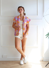 - Geometric print sleeveless padded jacket, with pockets