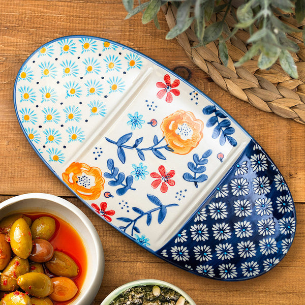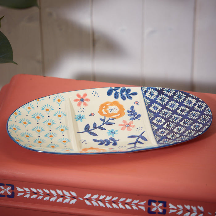 LANGS : Coral&Blue Floral Stoneware Bowl