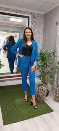 This COPE CLOTHING tailored suit is perfect for any formal occasion. The blazer features shoulder pads and 3/4 length sleeves with lining for a sleek, sophisticated look. The trousers have a high waist with belt included to complete the look. Plus, this premium suit has a sleek fit that allows you to look and feel your best.