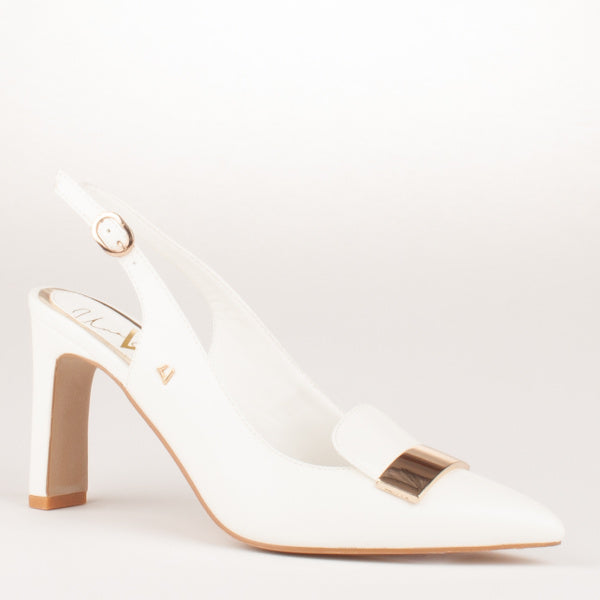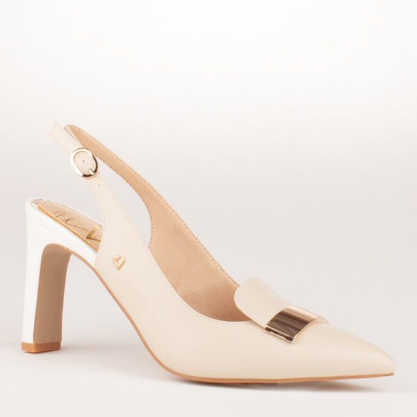 UNA HEALY Shake Em Down Buckle Front Heels- Cream