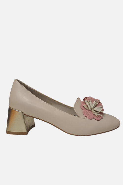 DANCING MATILDA Floral Detail Court Shoe - Natural