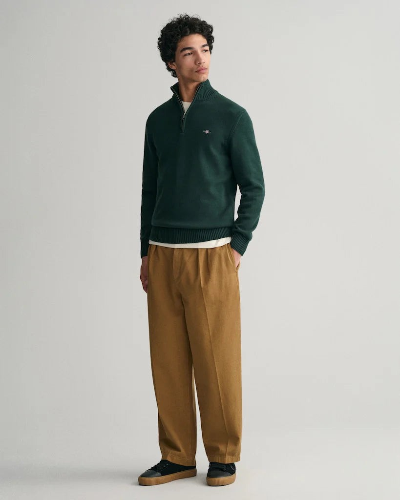GANT Men's Casual Cotton Half-Zip Sweater - Tartan Green