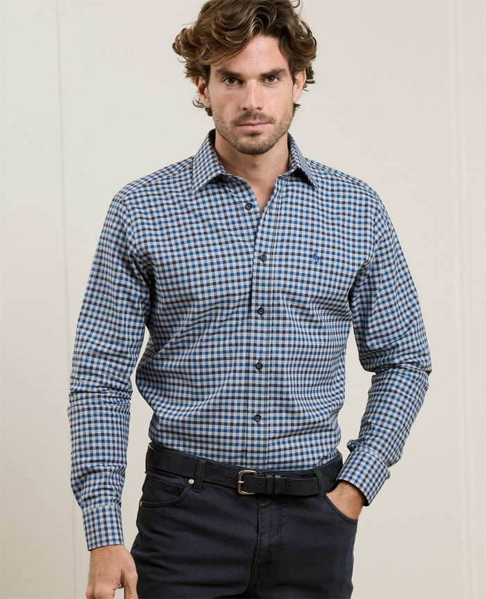 MAGEE Tullagh Cotton Shirt - Blue Herringbone