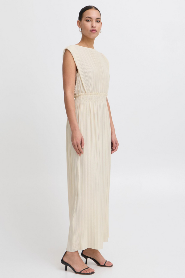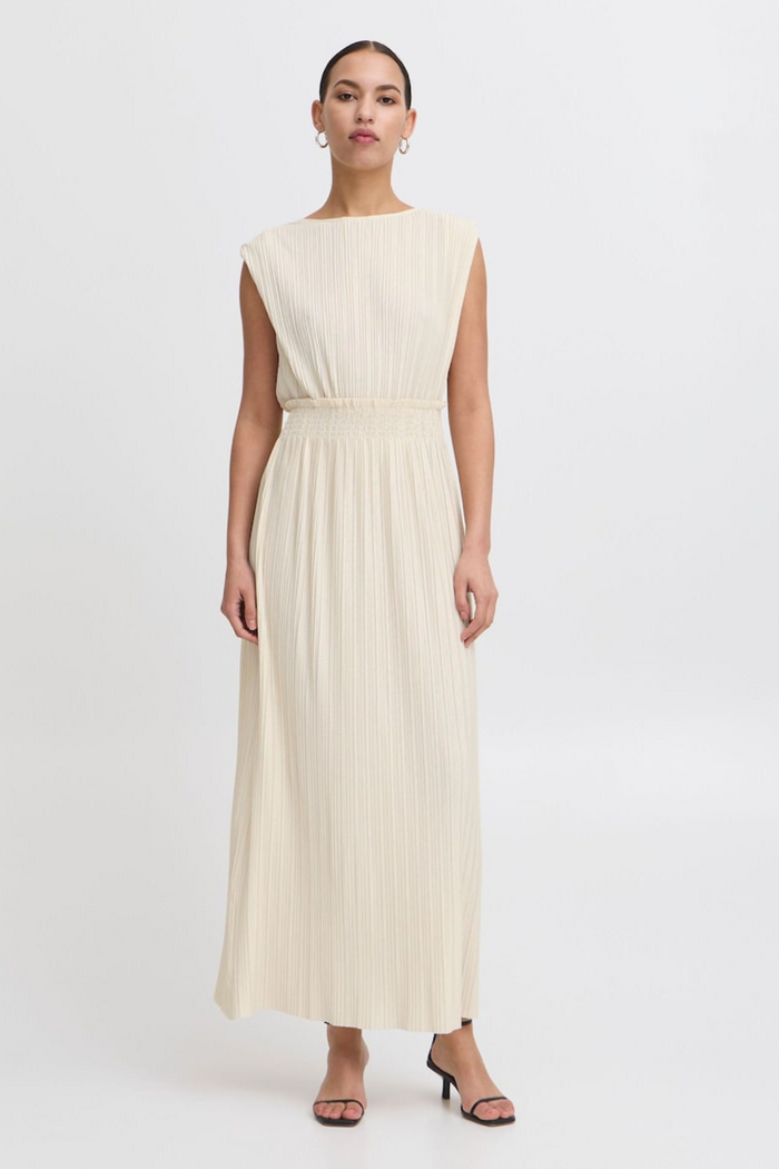 ICHI Yamilet Pleated Long Dress - Cream