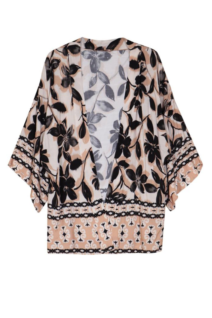 ACTUELLE Floral Wide Sleeve Kimono - Black