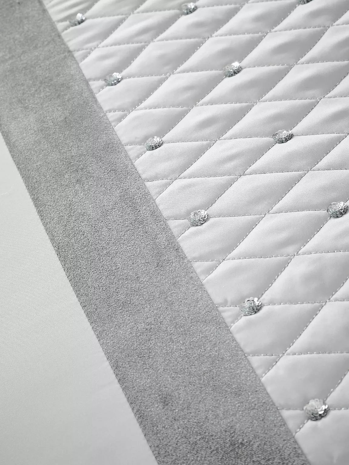 - Luxe white bedlinen with quilted edging and sequin embellishment.