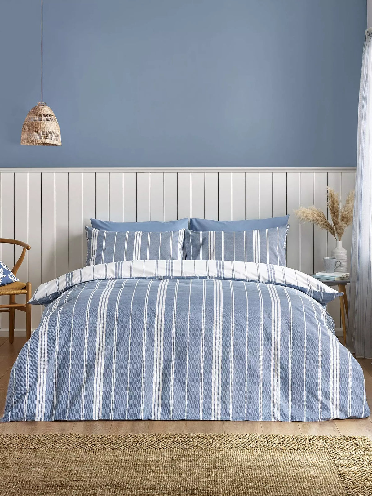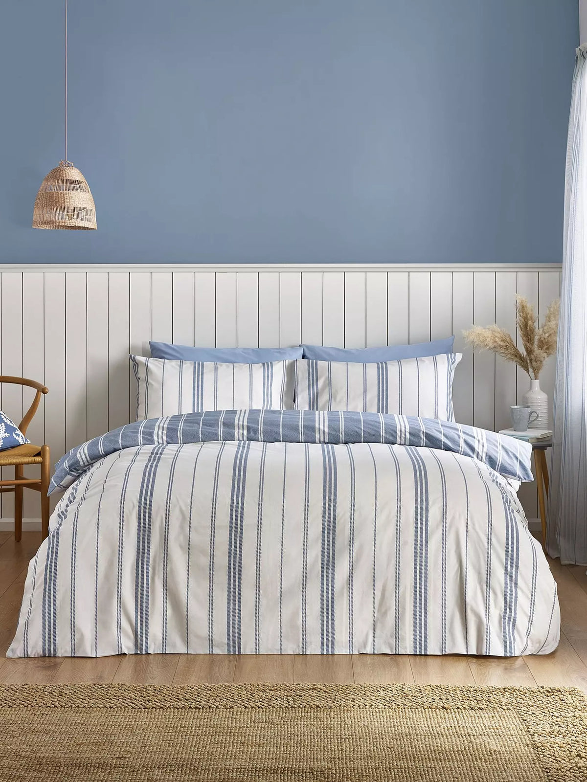CATHERINE LANSFIELD Harbour Stripe Reversible Duvet Cover Set - Blue