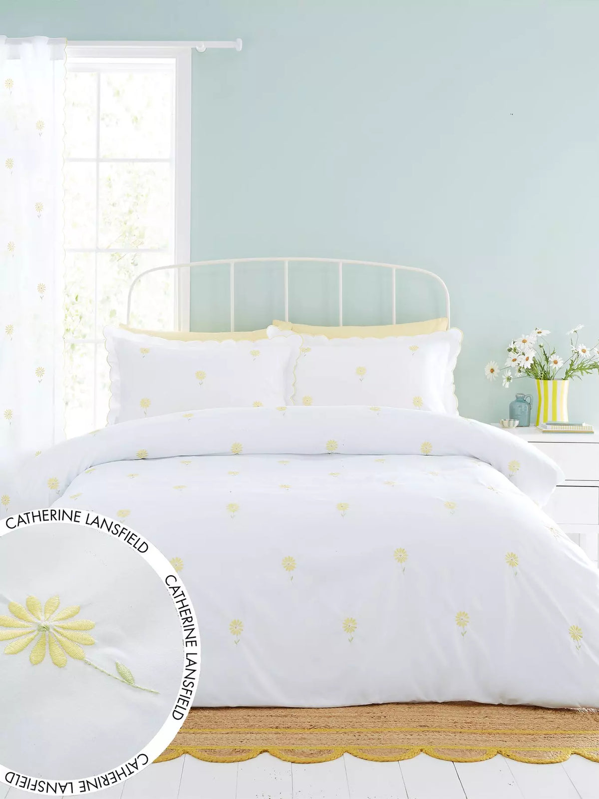 CATHERINE LANSFIELD Lorna Embroidered Daisy Duvet Set - White