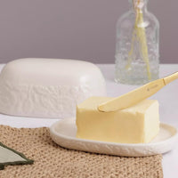 Crafted from premium ceramic, the PRICE & KENSINGTON Acorn Butter Dish combines functionality with refined aesthetics. The embossed acorn motif and cream glaze finish provide understated elegance while effectively preserving butter freshness. This versatile dish complements the comprehensive Acorn collection, allowing for cohesive kitchen styling through matching storage and tabletop accessories.