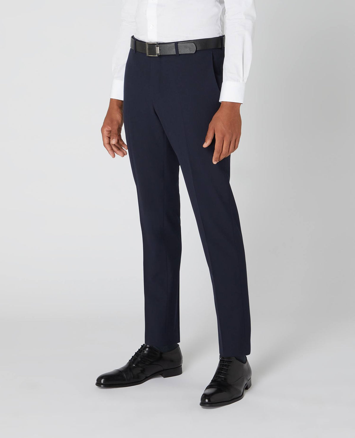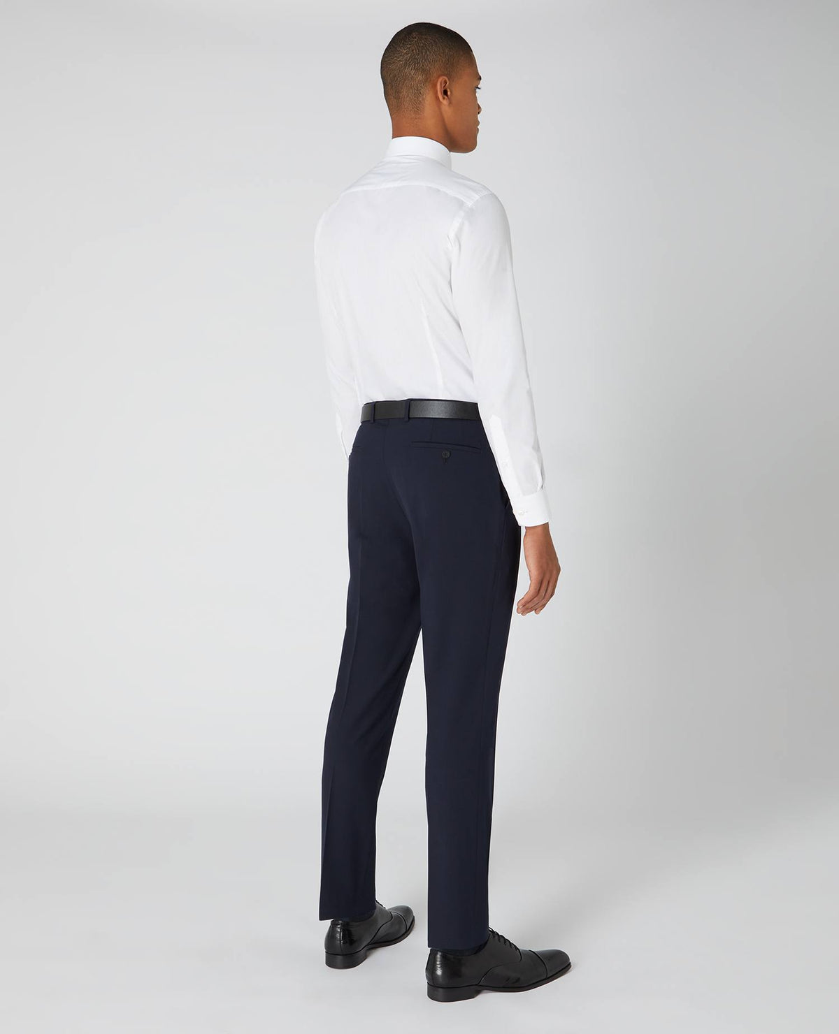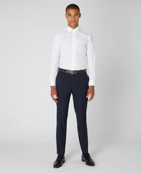 Elevate your formal wardrobe with the REMUS UOMO Leroy Dress Trousers. These elegant and classic trousers are ideal for any formal event, providing a sophisticated and flattering tapered fit in a sleek navy color. Made from a quality polyester viscose blend with added elastane, they offer both style and comfort. Complete your look with one of our luxurious shirts and leather dress shoes.