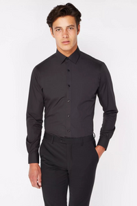 REMUS UOMO Seville Long Sleeve Formal Shirt - Black