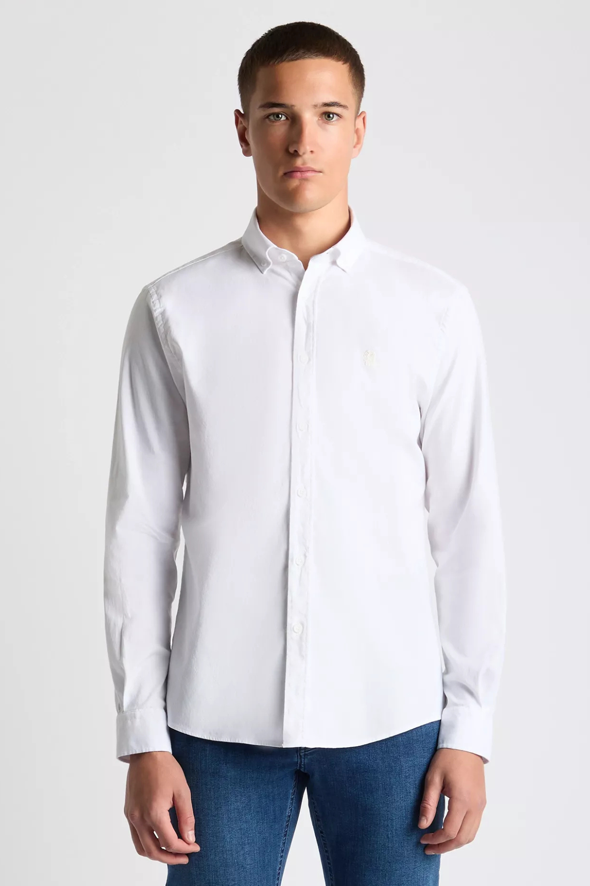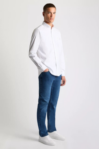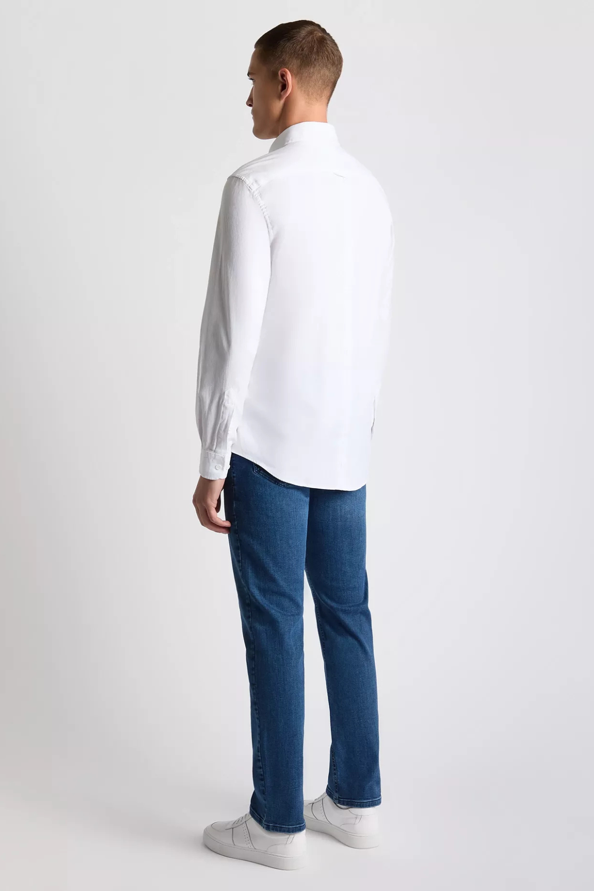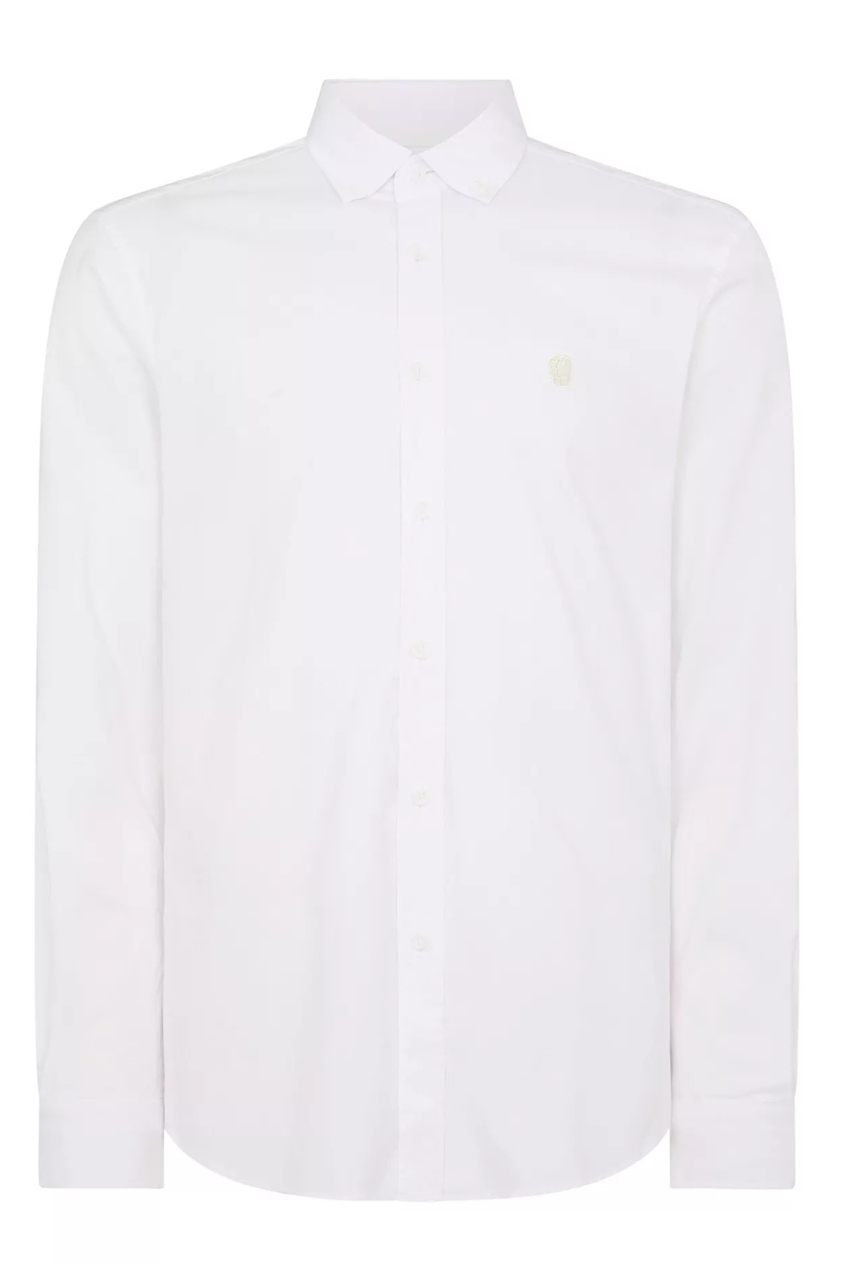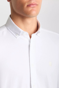 A precision-tailored oxford cotton shirt featuring a pointed button-down collar and thoughtful details including an inverted back pleat and back yoke loop. The tapered silhouette offers a contemporary profile while the 100% cotton with mechanical stretch ensures exceptional comfort for extended wear. The contrasting embroidered brand mark adds a subtle signature touch, making this versatile piece equally appropriate for professional environments or refined casual settings.
