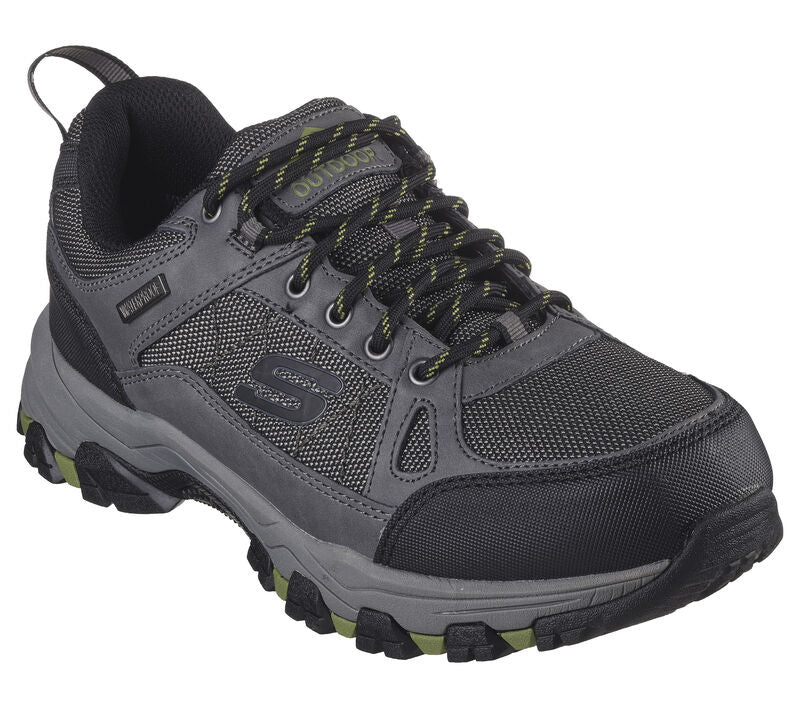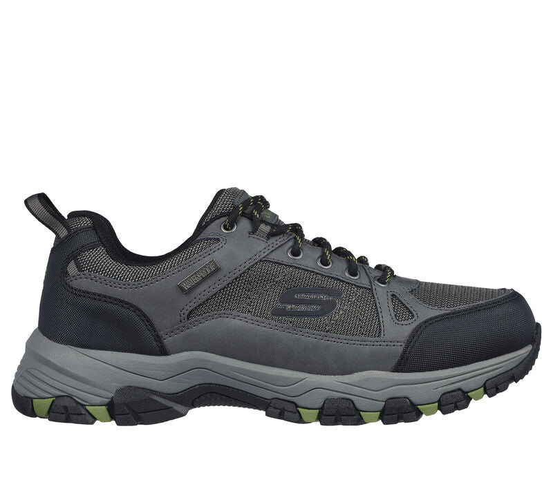 Put your best foot forward in all-terrain comfort with the Skechers Relaxed Fit: Selmen shoe. This outdoor trail sneaker features a waterproof leather, synthetic and mesh upper with a lace-up front and cushioned Air-Cooled Memory Foam insole.