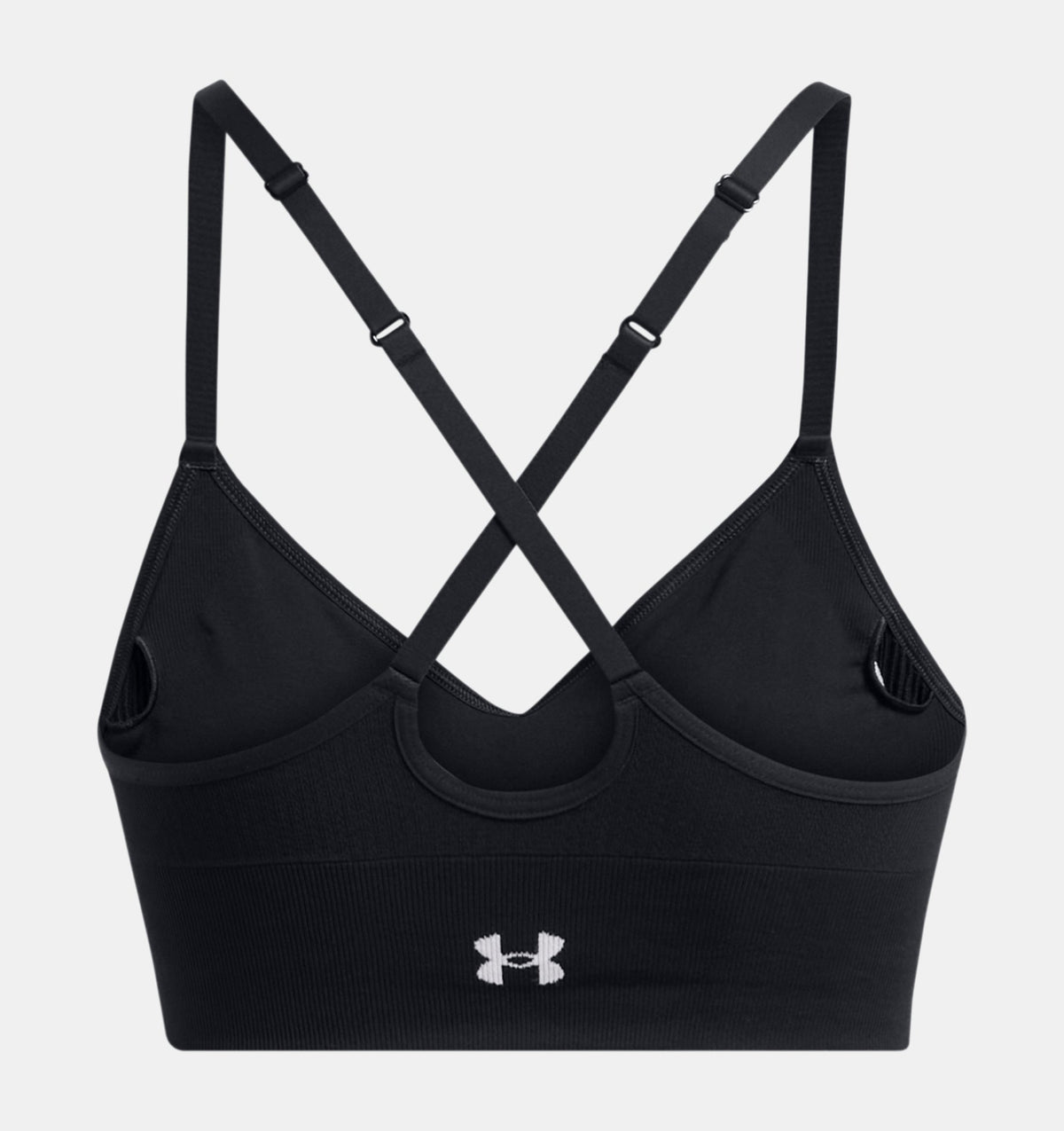 Get the support you need for low-impact activities with UNDER ARMOUR's Women's Vanish Seamless Low Sport's Bra in black. Its seamless fit and adjustable straps offer maximum comfort, while the longer cut ensures complete coverage. Perfect for staying comfortable and focused during your workout.