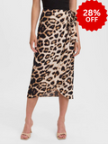 Maxi wrap skirt with a curved hemline, high waist, and tie-band at the side of the waist.